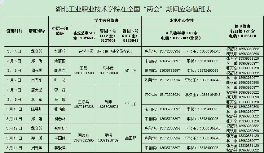 根据市委办公室市政府办公室《关于加强全国“两会”期间值班工作》(【2018】24号)精神,制订了《安博官方(中国)总部在全国“两会”期间应急值班表》,现将应急值班表印发给你们,请严格抓好落实。