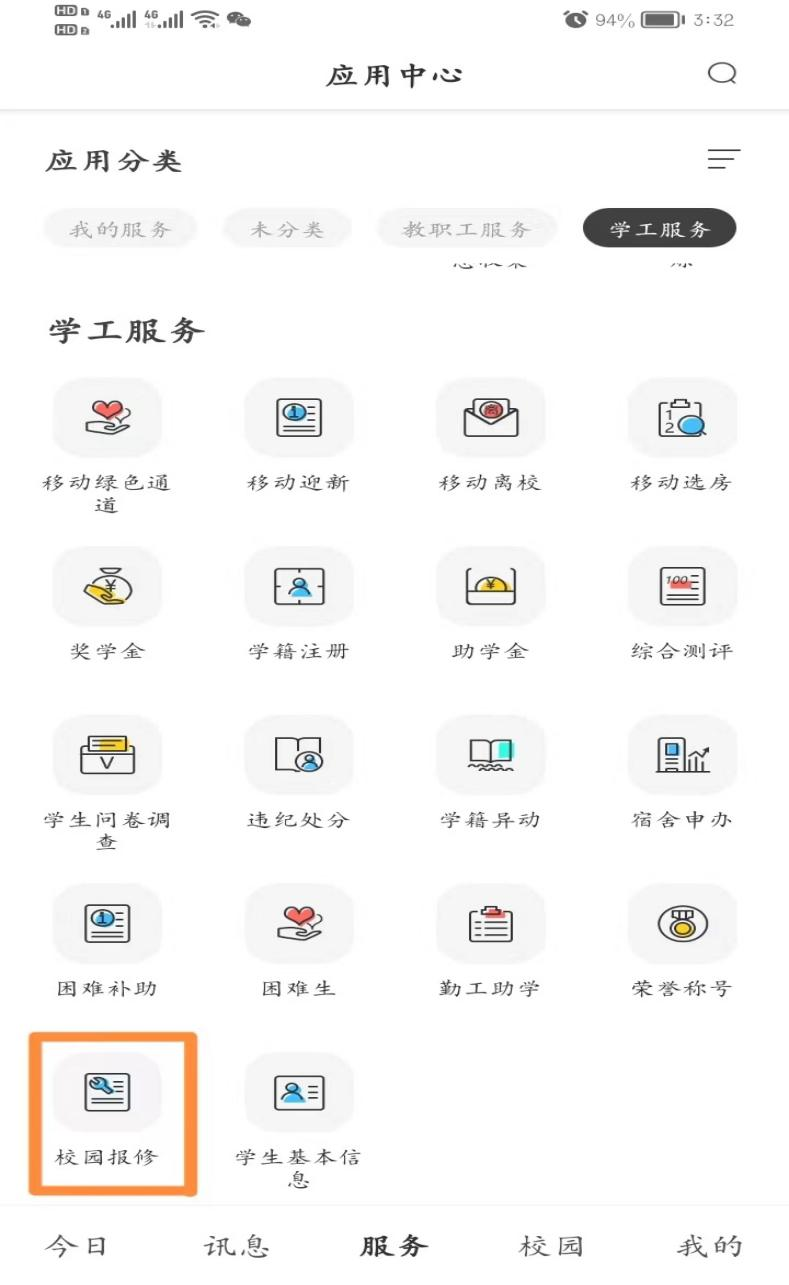 1、登录“今日校园”APP——学服务——校园报修
