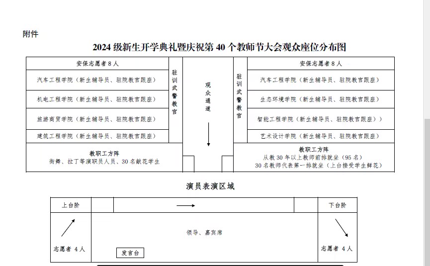 (二)请参会教职工着正装(白衬衣、深色裤子或裙子)在指定区域就座并签到。